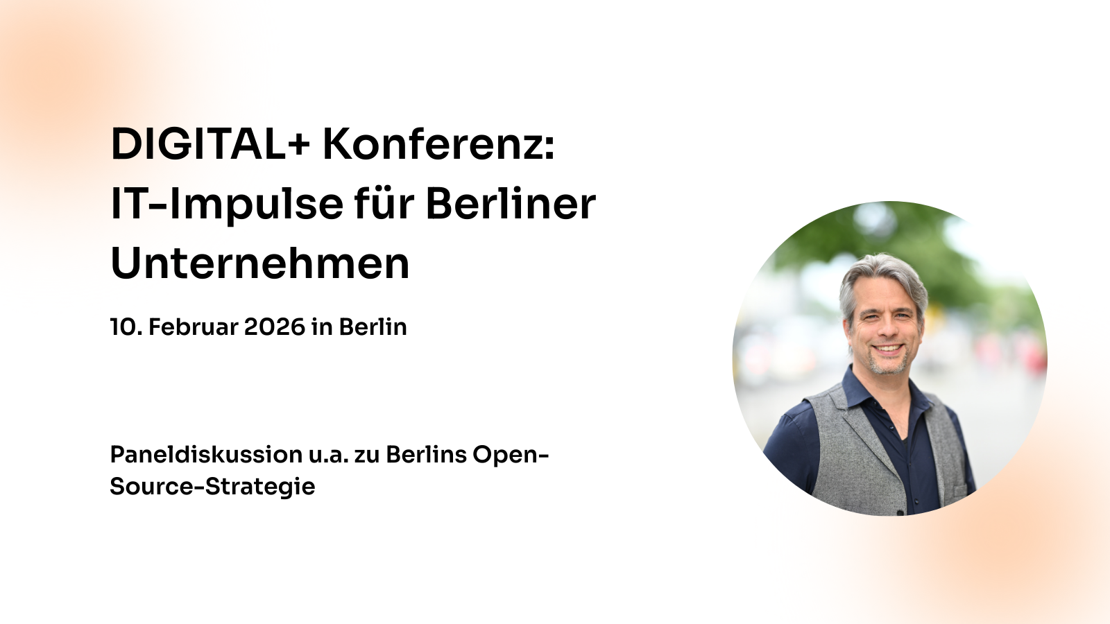 Der von uns initiierte Open-Source-Tag Berlin findet morgen als eigener Open Source-Track im Rahmen der "DIGITAL+ Konferenz" statt. Wir freuen uns sehr auf den Austausch zu digitaler Souveränität in Verwaltung und Unternehmen.