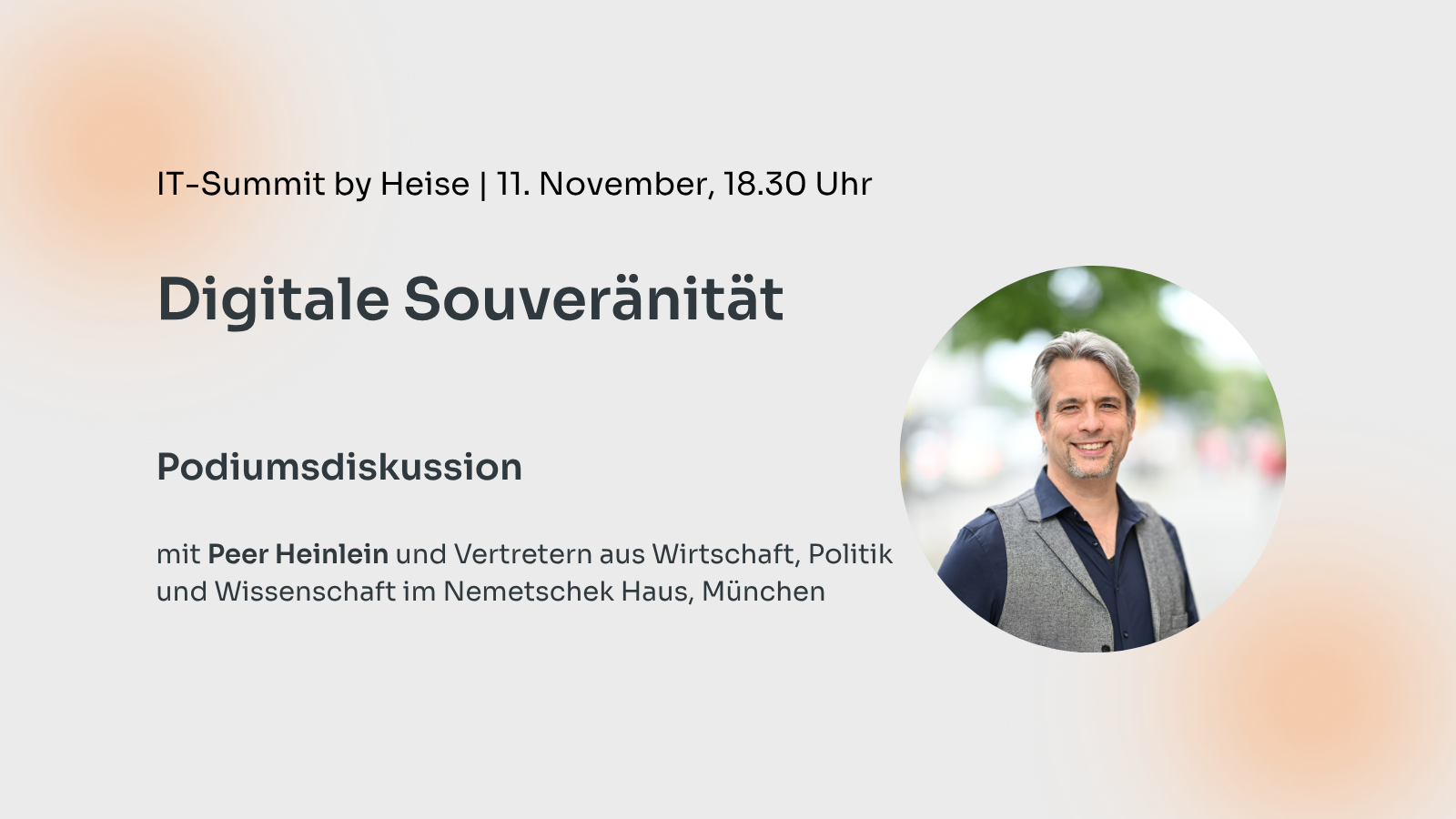 Renommierte Expertinnen und Experten aus Politik, Wissenschaft und Wirtschaft zeigen auf dem IT-Summit, wie sich Abhängigkeiten in Cloud, KI und Software verringern lassen – insbesondere durch offene, europäische Technologien. Gemeinsam mit weiteren Fachleuten diskutiert Peer Heinlein, wie sich eine souveräne digitale Zukunft gestalten lässt.